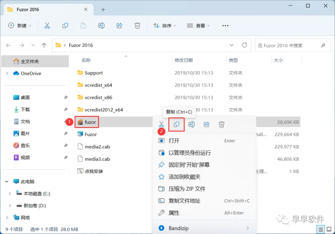 5、回到Fuzor 2016文件夹,找到【Fuzor】文件,右键点击【复制按钮】