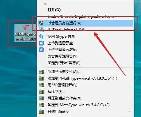 全程需以管理员身份操作,避免权限不足; 务必根据 Word 的 32/64 位选择对应文件,否则无法适配; 安装前若有旧版 MathType,建议先卸载,避免冲突。