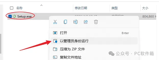 3.鼠标右击【Setup】选择【以管理员身份运行】。