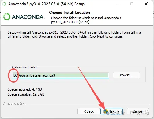 7.修改路径地址中的首字符C可更改软件安装位置(如:将C改为D表示安装到D盘),点击【Next】。