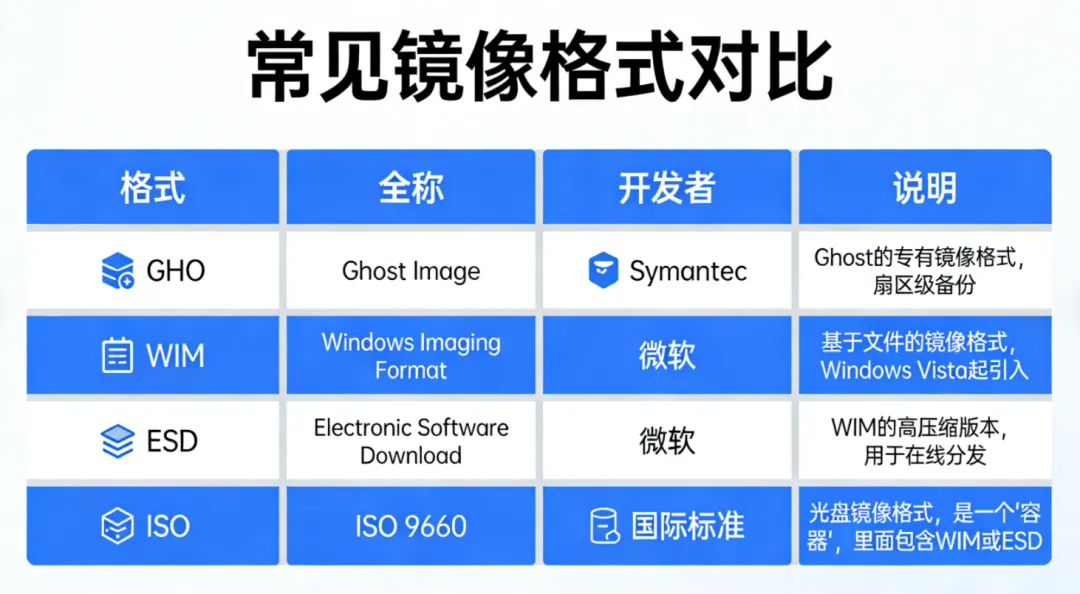目前主流镜像格式对比:GHO、WIM、ESD 、ISO