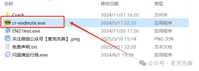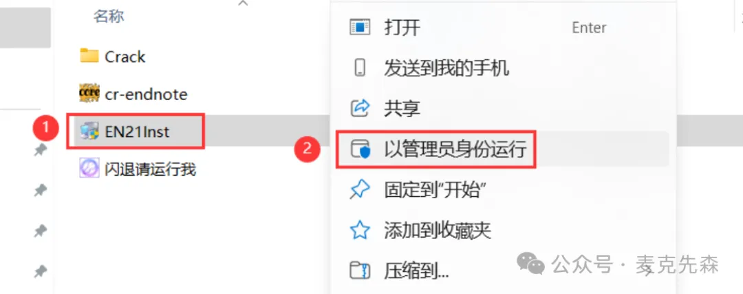 21,回到开始解压的文件夹,找到【cr-endnote.exe】,鼠标右键选择【以管理员身份运行】。