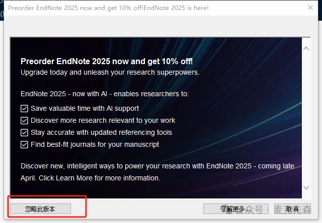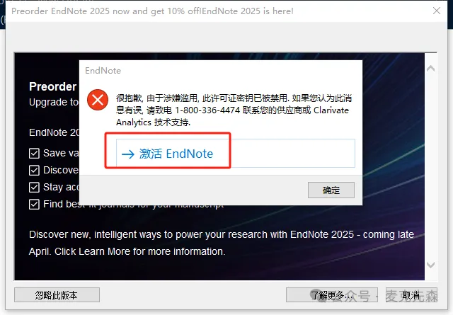 19,点击【激活EndNote】。