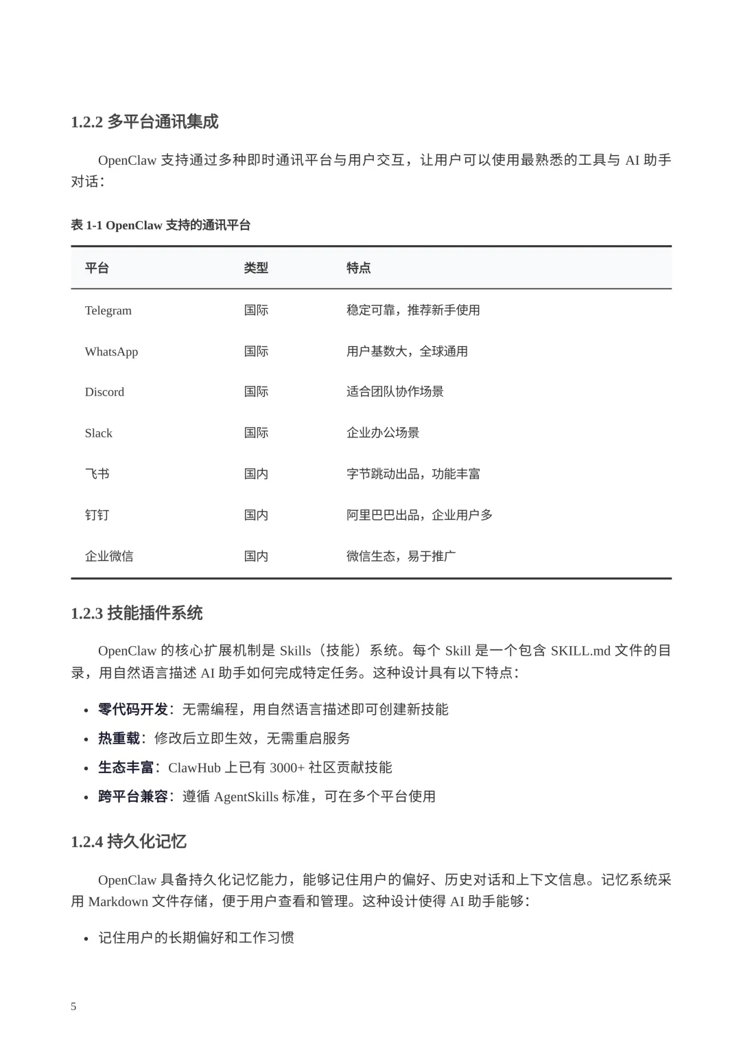 WhatsApp、飞书、钉钉等通讯平台交互,具备文件处理、浏览器自动化、系统命令执行、多平台集成等强大能力。