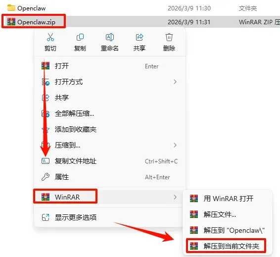 1.选中下载的压缩包,然后鼠标右键选择“解压到当前文件夹”(没有解压选项点这里)