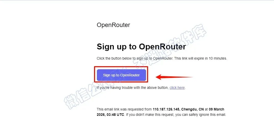 12.去邮箱里面找到OpenRouter邮件,点击”Sign up to OpenRouter“