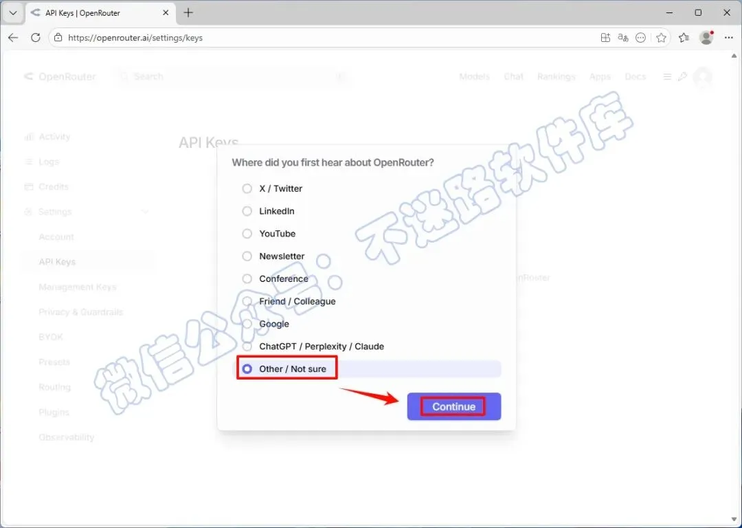 13.返回网页,选择”Other/Not sure“,点击”Continue“