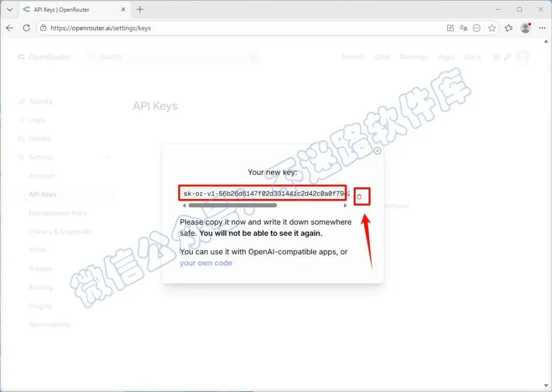 17.复制生成的key,也就是密钥,Key界面只会出现这一次,所以建议保存把Key在记事本里。