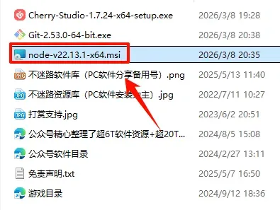 28.返回解压的“Openclaw”安装包,双击运行“node-v22.13.1-x64.msi”安装包(Node.js下载地址:https://nodejs.org/en/download)