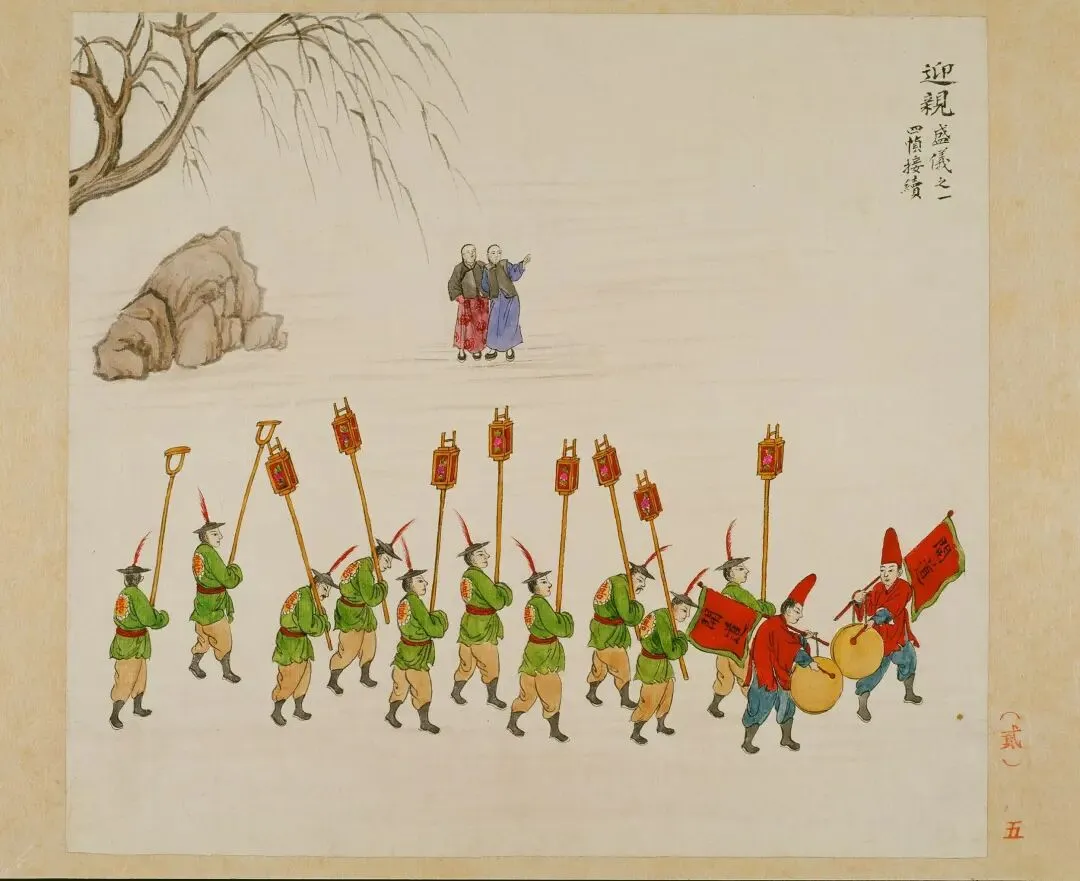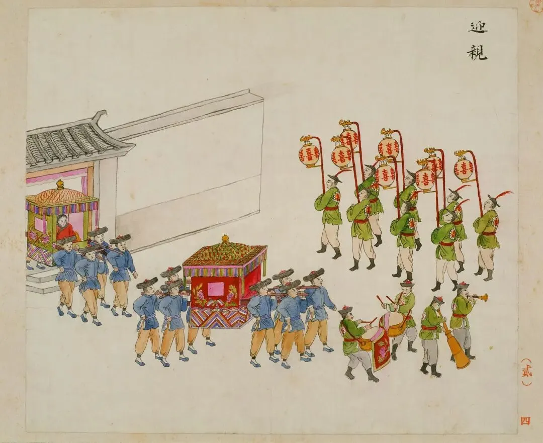 岁时单(18 图)记录全年节庆,从春联门神、元宵灯市、清明戴柳,到中秋拜月、重阳登高、腊月祭灶,完整呈现老北京年节习俗,如 “中元莲灯”“拖床冰嬉” 等场景鲜活生动。礼俗单(20 图)聚焦婚丧嫁娶,详细描绘搭棚结彩、送妆、上轿、迎亲、圆坟等仪式流程,还原传统礼制在民间的实践。