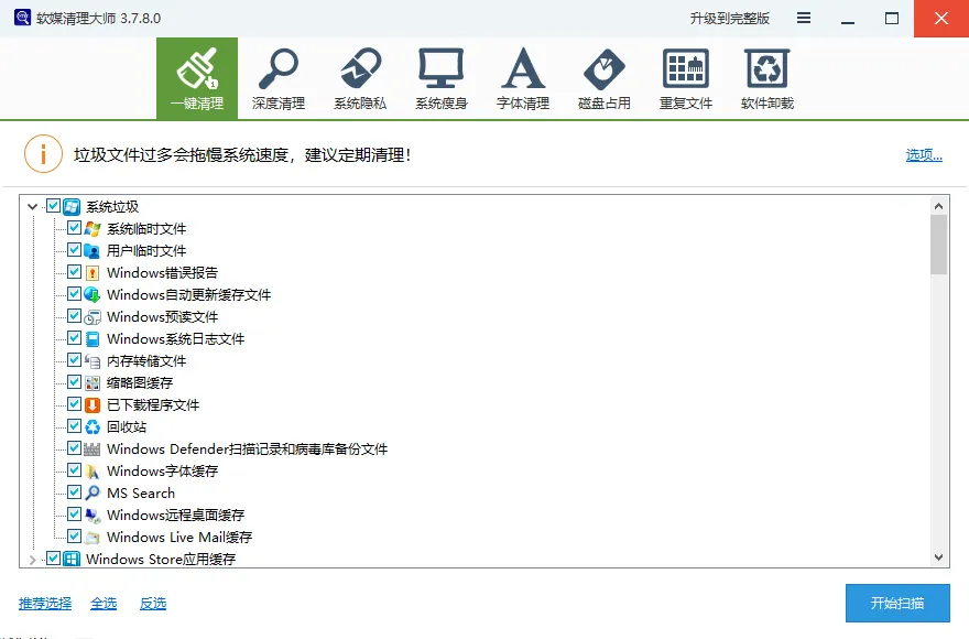1️⃣ 深度垃圾清理,扫出“隐形占空间大户”