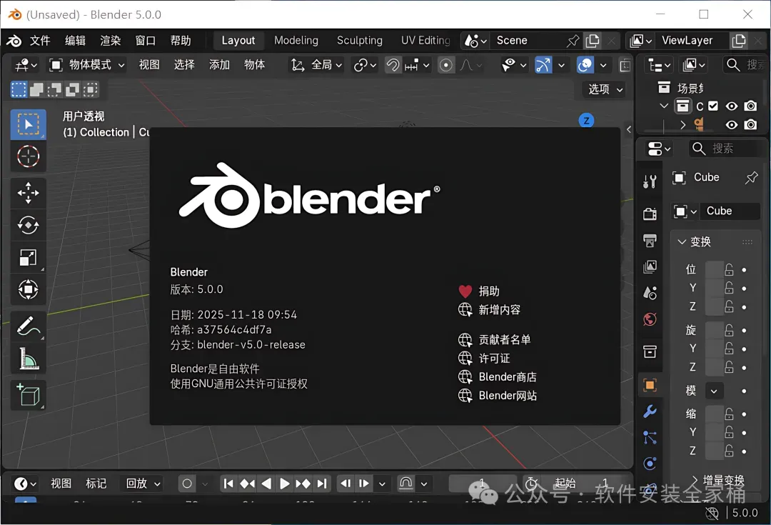 Blender 是一款免费且开源的 3D 创作软件,支持建模、动画、渲染、视频剪辑、视觉特效、材质贴图和物理模拟等全流程三维内容制作,广泛应用于个人创作、影视制作、游戏开发和教育领域。