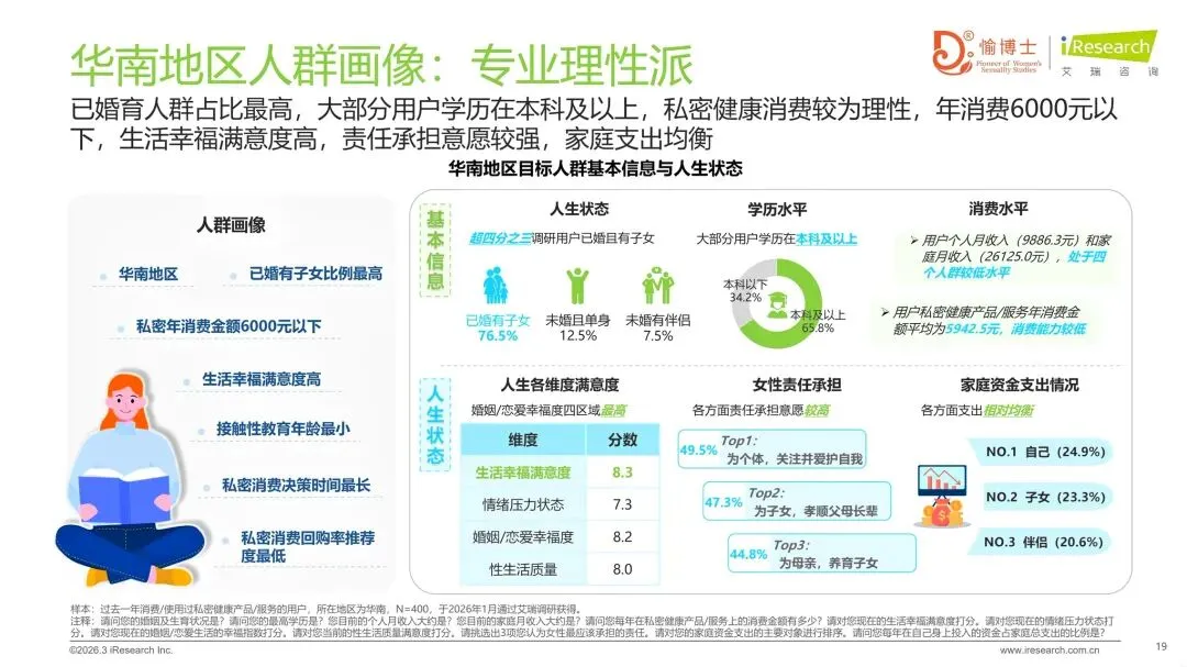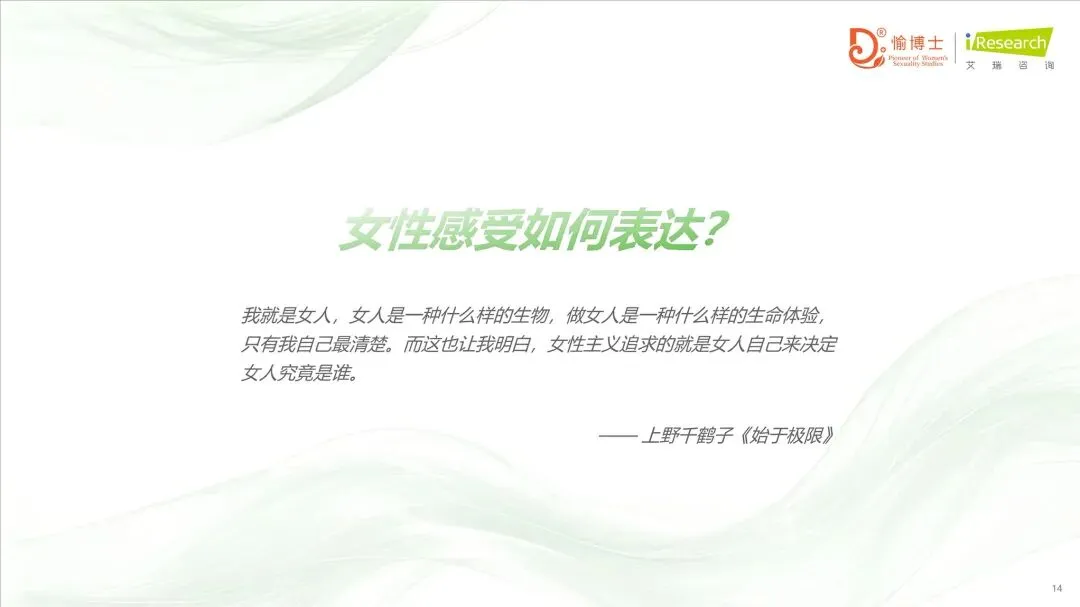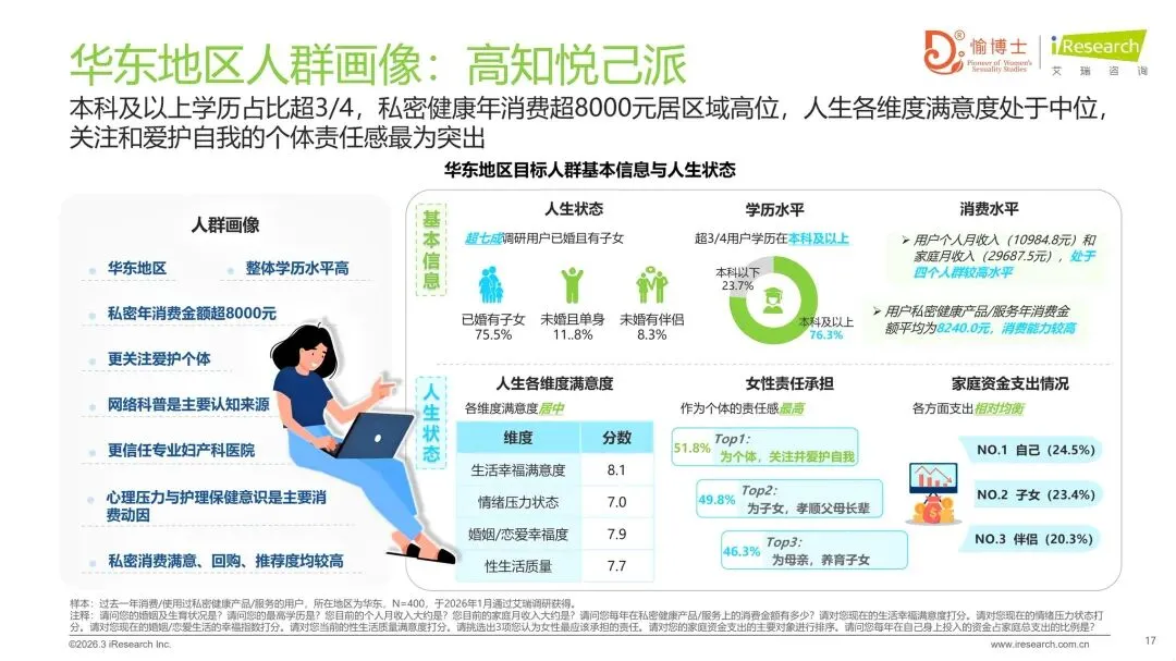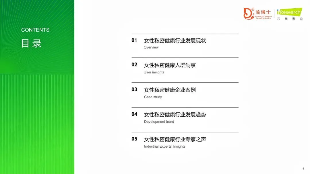>新洞察:通过对过去一年消费/使用过私密健康产品/服务的1600位调研对象进行问卷调查,以及8位不同年龄段/地区用户的1v1深入访谈,报告深刻了解中国女性的生活状态、家庭与婚恋关系、性教育情况、私密健康间题、日常护理习惯以及未来产品服务的期待等,为产业从业者提供了重要的市场导向