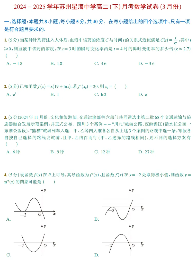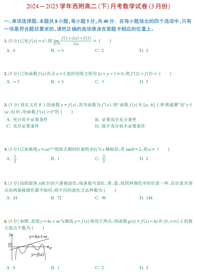 往年苏州高二数学3月月考试卷(集)~可下载PDF电子版转眼开学就进入三月份了,因此整个教学的节奏还是比较紧张的,而这学期也号称“史上最短的学期”,也给老师和学生带来了压力和挑战。但新的学期还是要继续努力、加油! 今天推送整理好的往年高二数学月考试卷《2024-2025学年苏州市高二(下)3月考数学试卷》(高清版),文章末尾可以下载电子版使用练习!更多相关资料和学习问题,可联系(微信):16606164896【试卷点击下方链接可下载】:2024-2025学年苏州市高二(下)3月月考数学试卷2024-2025学年苏大附中高二(下)月考数学试卷(3月份).pdf2024-2025学年苏州星海中学高二(下)月考数学试卷(3月份).pdf2024-2025学年西附高二(下)月考数学试卷(3月份).pdf更多相关资料和学习问题,可联系(微信):16606164896点击下方可关注,欢迎转发、点赞: