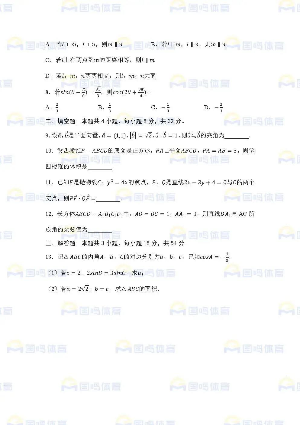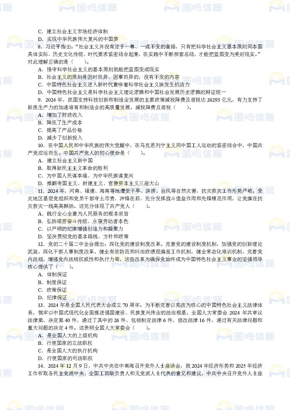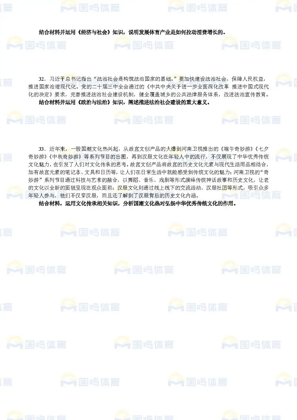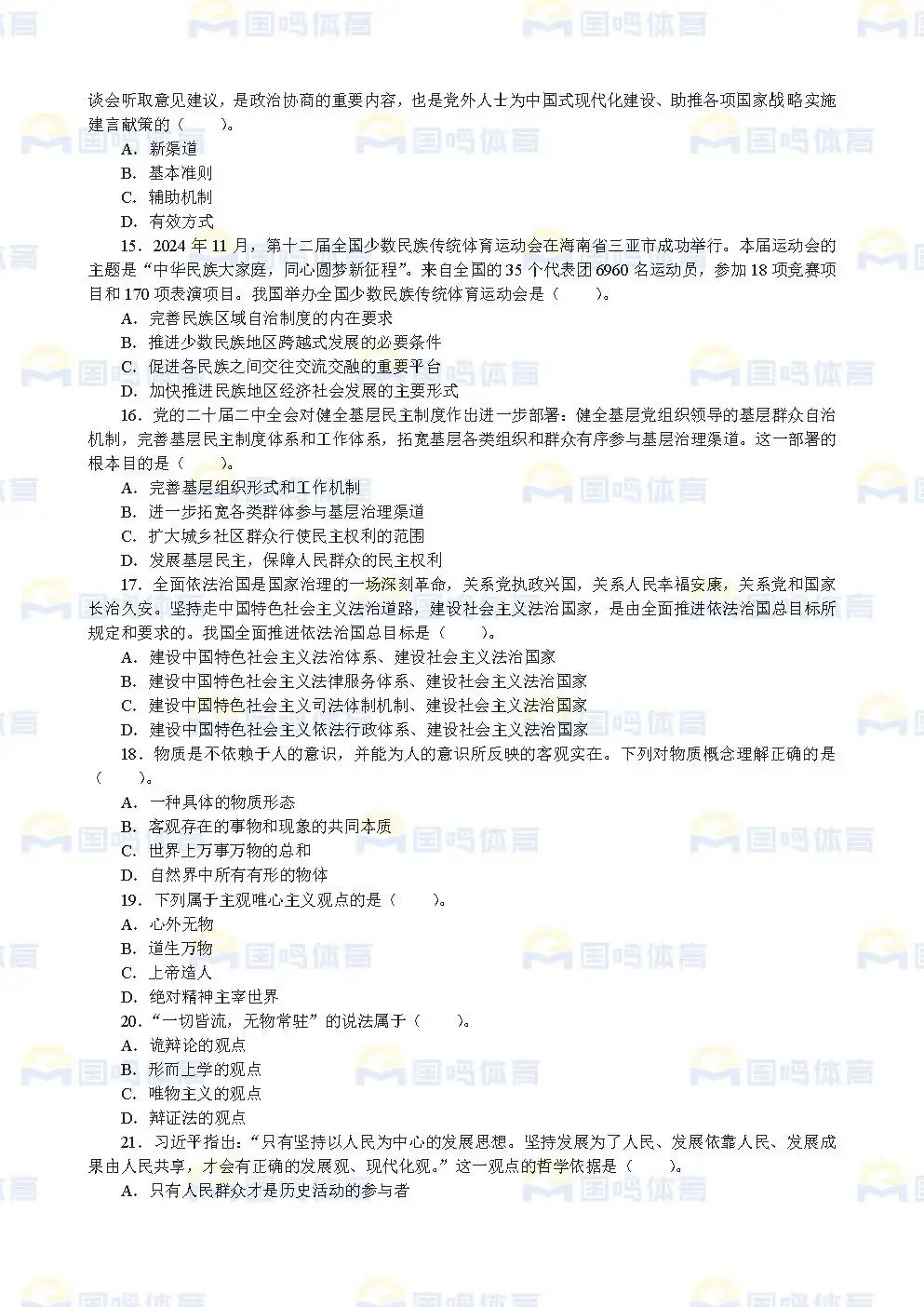 单招真题可下载!体育单招2025届数学、政治真题卷