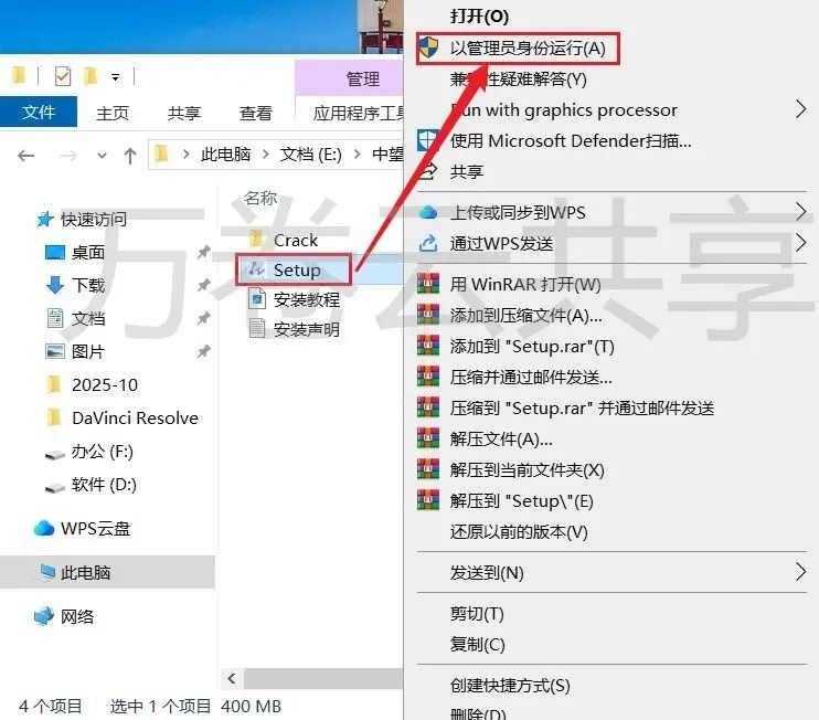 2.鼠标右击→Setup,选择→以管理员身份运行