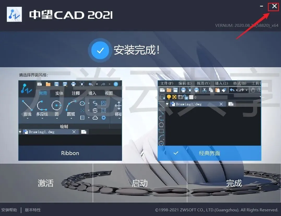 12.双击→桌面ZWCAD2021图标启动软件