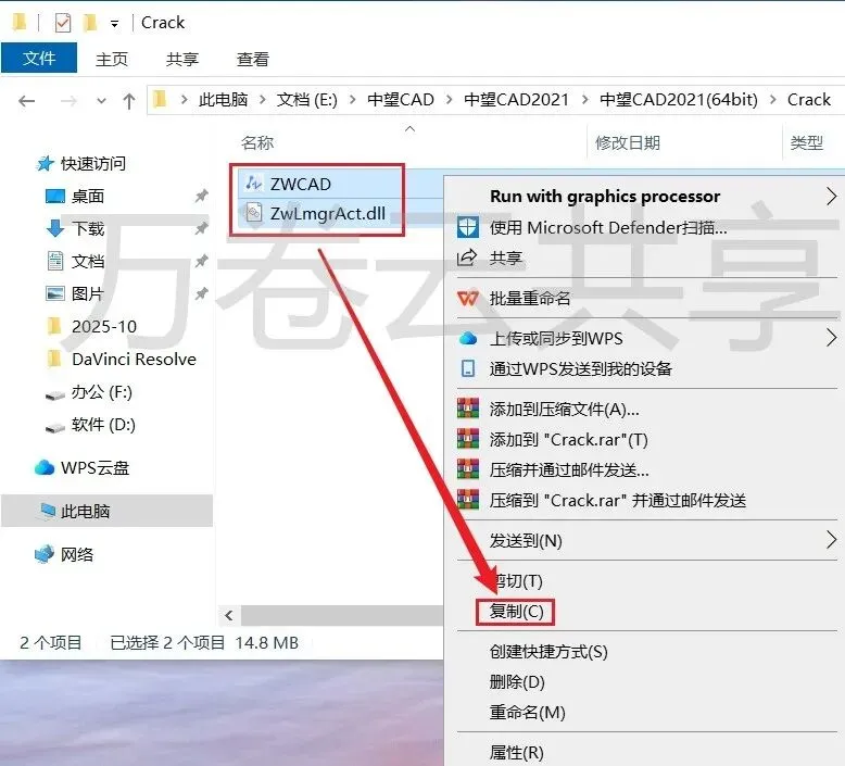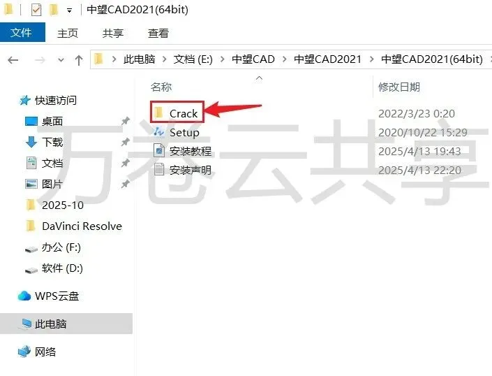 7.打开安装包解压后的中望CAD2021(64bit)文件夹,双击→打开Crack文件夹