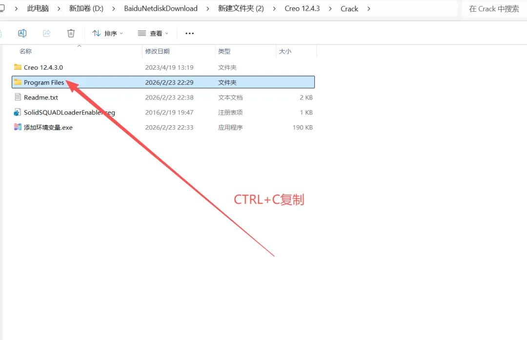 2.进入【Creo 12.4.3\Crack】文件夹内,复制【Program Files】文件夹。