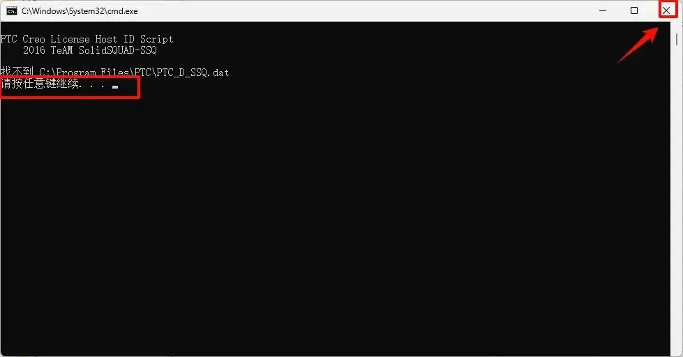 5.提示【按任意键继续...】,点【x】退出。