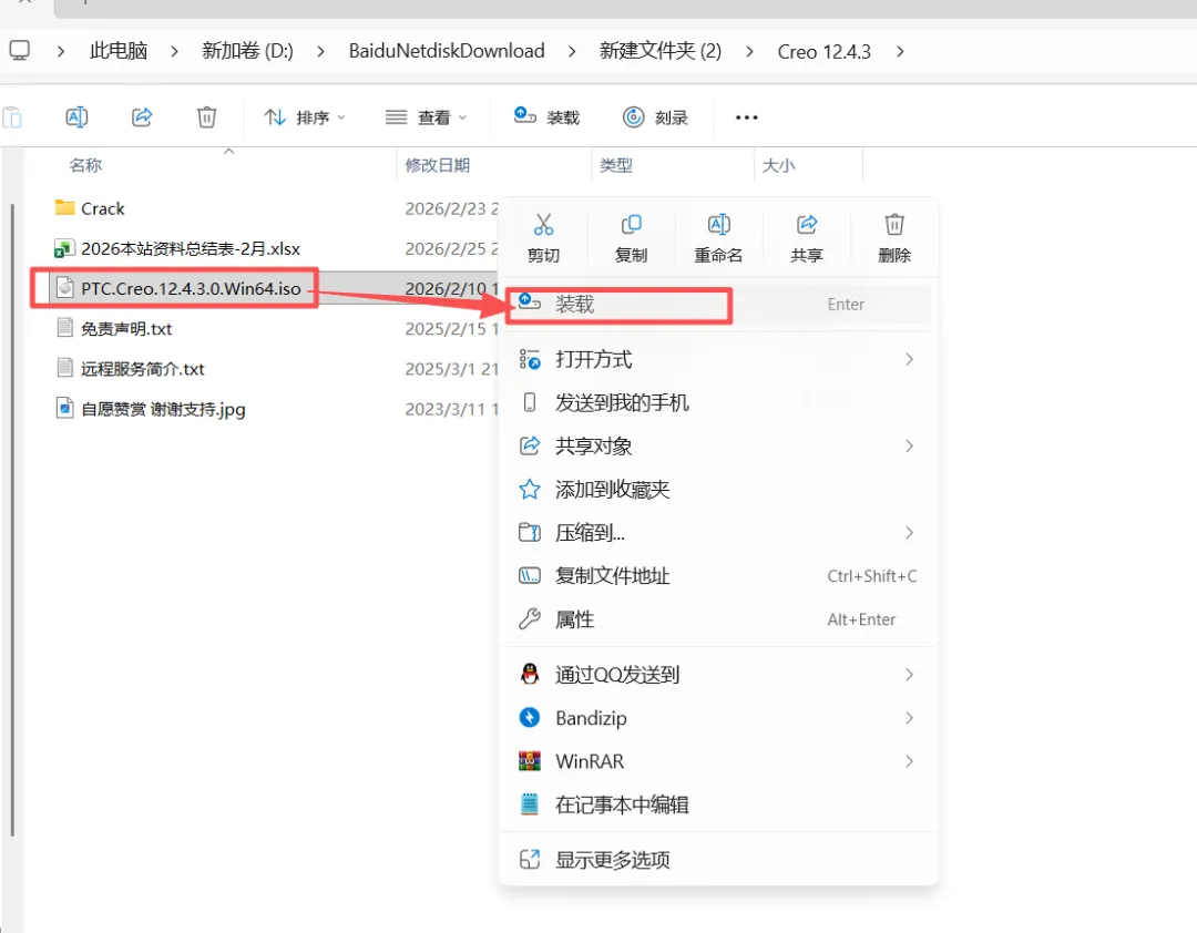 7.右击【PTC.Creo.12.4.3.0.Win64】,点【装载】。