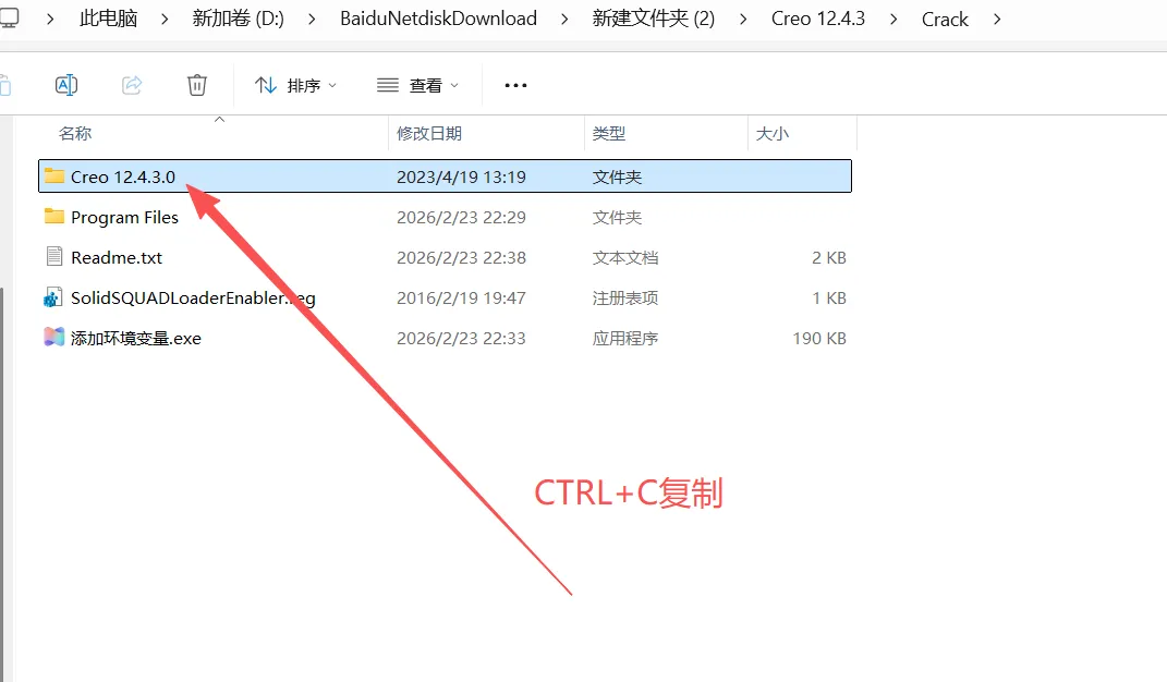 16.返回解压后的【Creo 12.4.3\Crack】文件夹内,复制【Creo 12.4.3.0】文件夹。