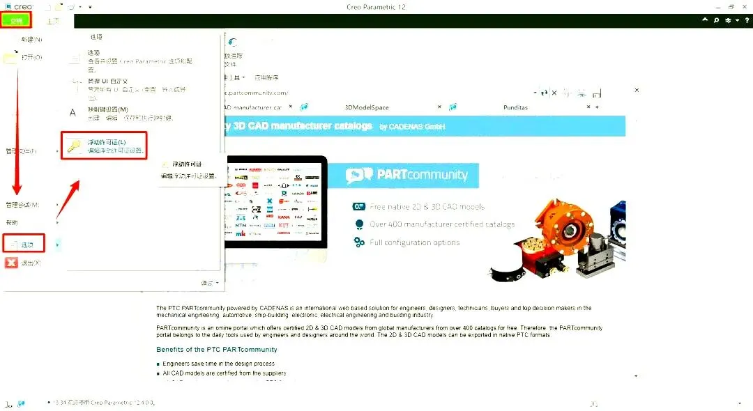 24.温馨提示:许可证文件包括一些浮动和超级捆绑许可证要在当前Creo会话中激活浮动和超级捆绑许可证,请打开软件依次点:【文件>选项>浮动许可证】。