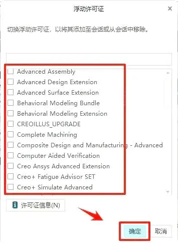25.勾选所需的浮动许可证和超级许可证,然后点【确定】。