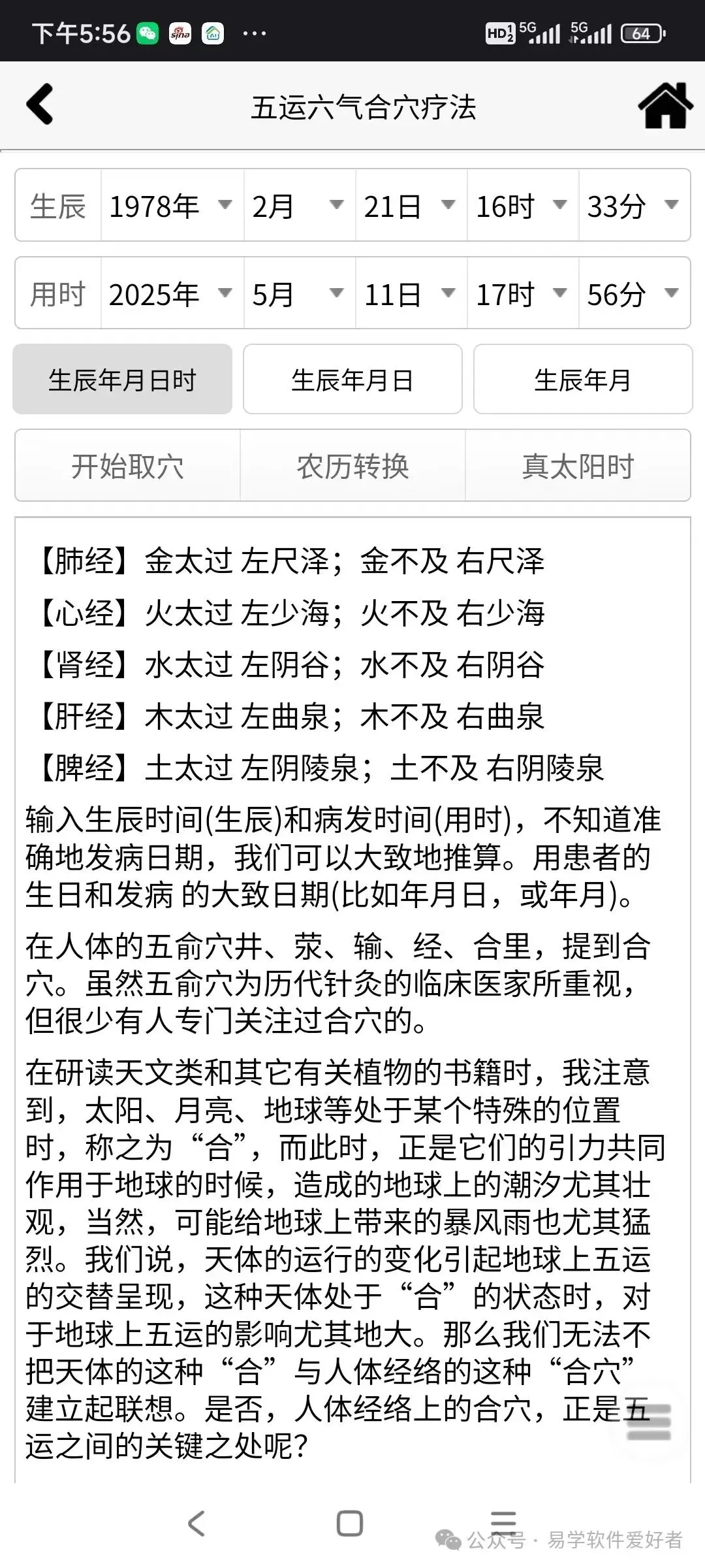 手机版五运六气合穴疗法辅助软件,卖38元,加微信:A-118774
