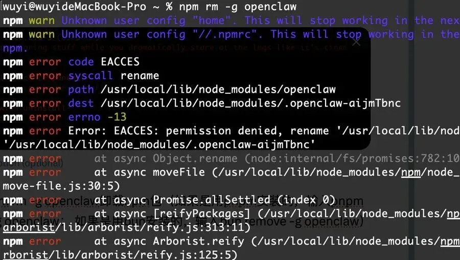 openclaw uninstall --all --yes --non-interactive3.卸载npm包