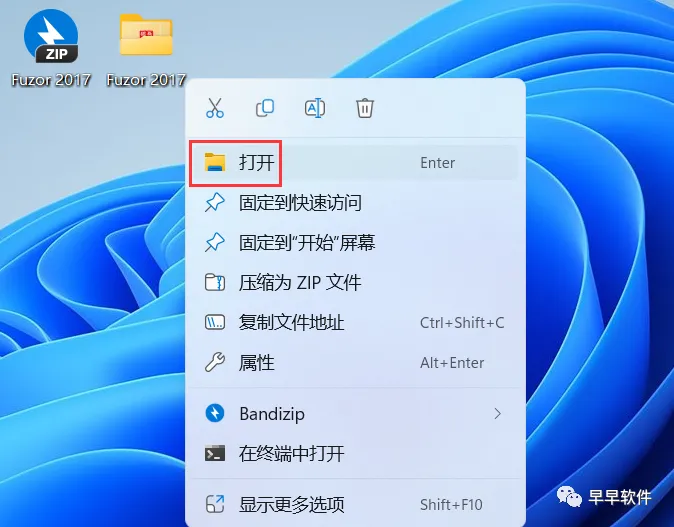 12、右键桌面上的【Fuzor 2017软件图标】,点击【打开】