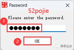 4、密码输入:52pojie,再点击【OK】