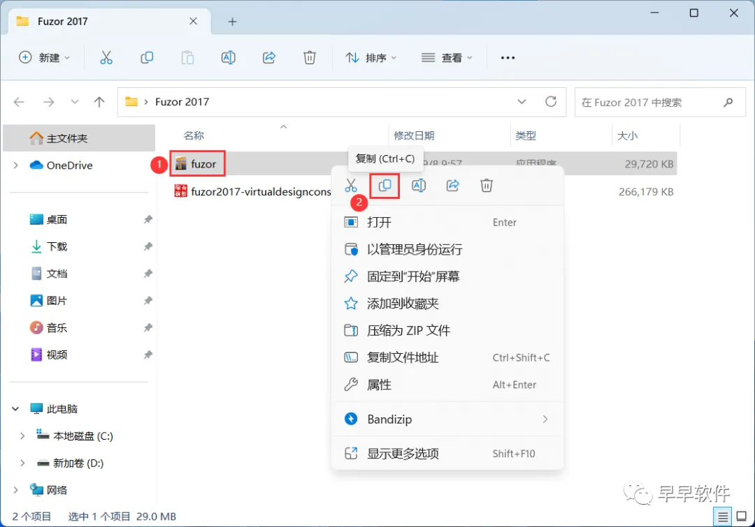 10、回到Fuzor 2017文件夹,找到【Fuzor】文件,右键点击【复制按钮】