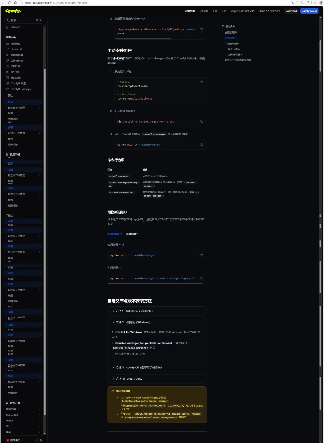 安装ComfyUI-Manager,我采用的自定义节点版本安装方法中的方法2