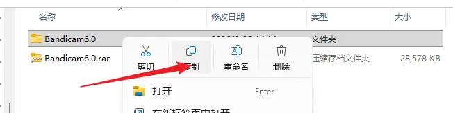 2.鼠标右击【Bandicam6.0】文件夹选择【复制】。