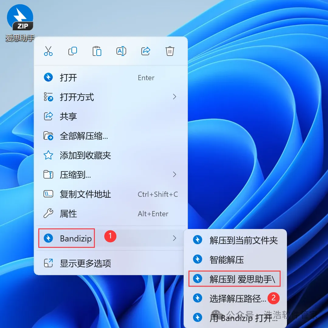 1、下载爱思助手软件安装包到电脑上,右键选择【解压到爱思助手\】