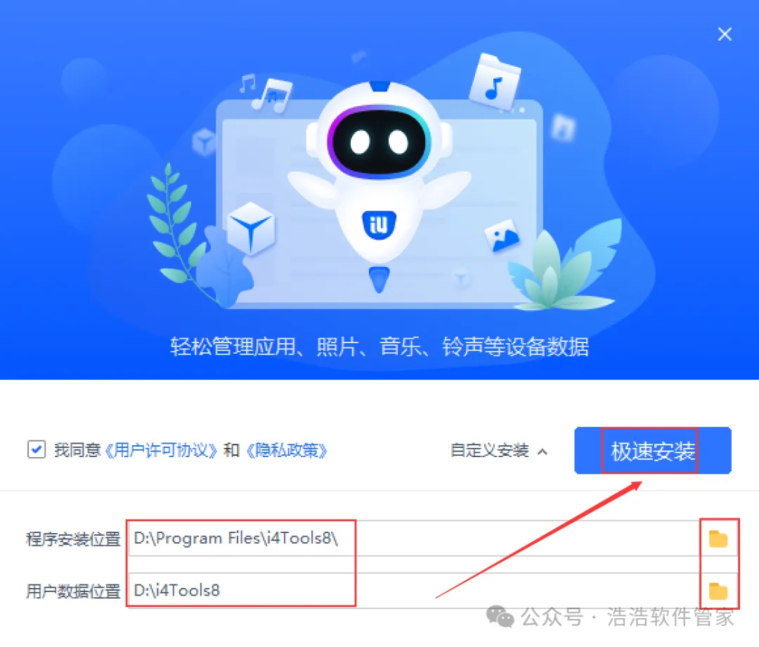 5、软件默认安装在C盘,可自定义更改软件安装位置,这里小编选择安装在D盘;点击【极速安装】