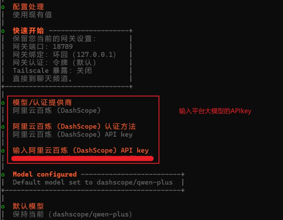 2. 选择配置模式:默认「快速开始(QuickStart)」,直接回车(无需手动配置复杂参数);