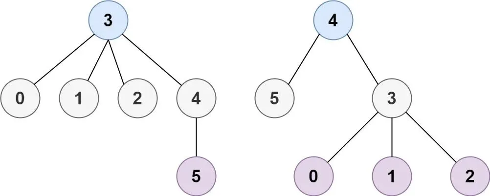 输入:n = 6, edges = [[3,0],[3,1],[3,2],[3,4],[5,4]]输出:[3,4]提示: