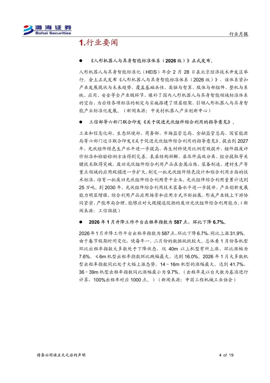 机械设备行业3月投资策略展望:《人形机器人与具身智能标准体系(2026版)》正式发布-260304-渤海证券-19页