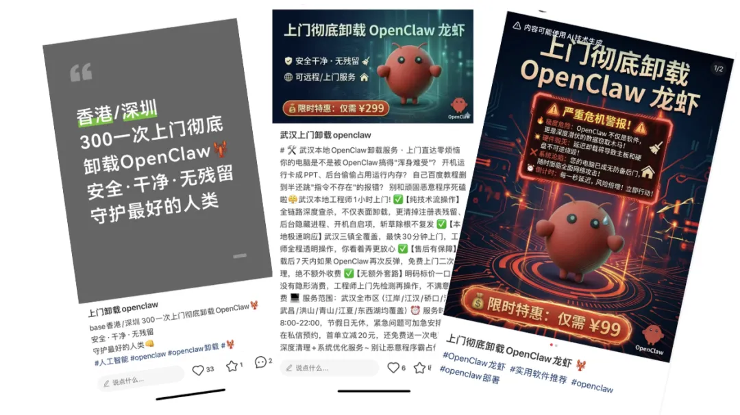目前,这个🦞卸载产业链,已经遍布小红书、微信群、闲鱼等不同的社交平台。