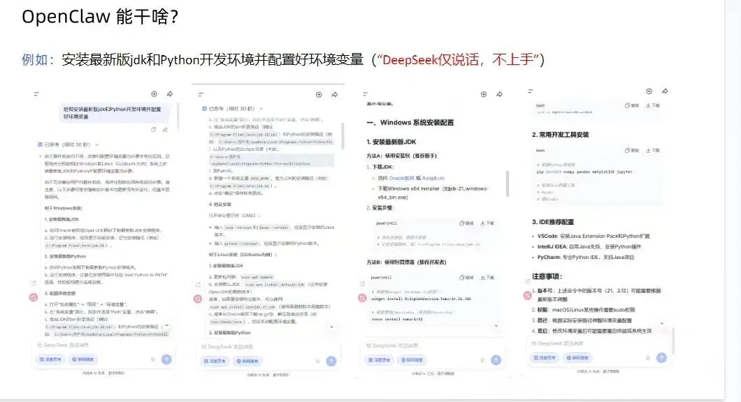 OpenClaw可帮你节省大量重复操作时间,专注核心开发工作:指令1:“运行当前项目的测试用例,失败后将日志发送到我的Telegram账号”;指令2:“在GitHub上创建一个名为clawdbot-demo的仓库,添加README文件并初始化Git”;指令3:“查看本地8080端口的占用情况,终止占用该端口的进程”。