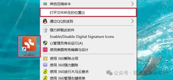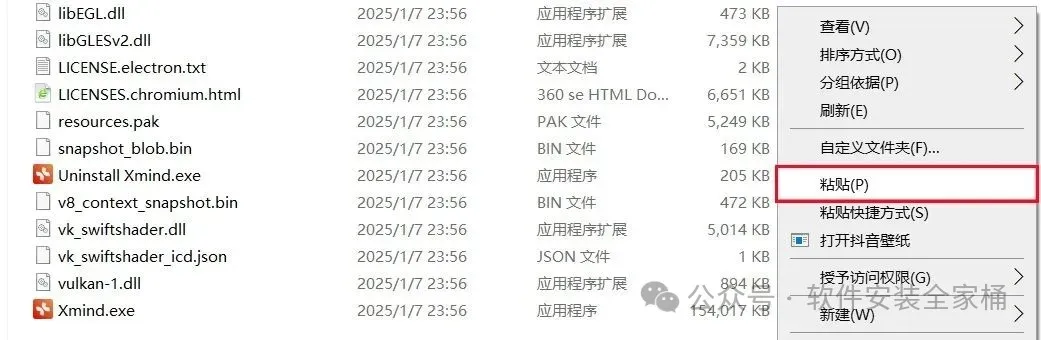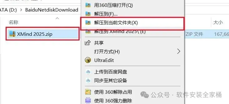 1.打开下载的Xmind 2025软件安装包,鼠标右击压缩包选择【解压到当前文件夹】。