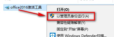 6.选中office2016激活工具,鼠标右键点击“以管理员身份运行”