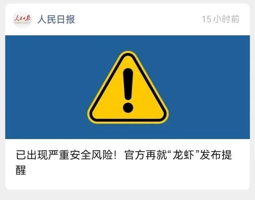 然而,短短一周时间,风向突变。昨天人民日报公众号发表对安装“小龙虾”的安全提醒。