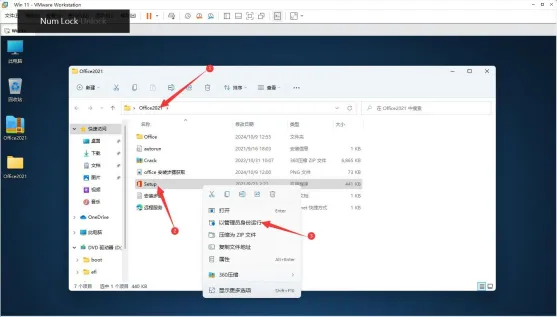 2.打开解压出来的Office2021文件夹,选中Setup程序,右键以管理员身份运行!