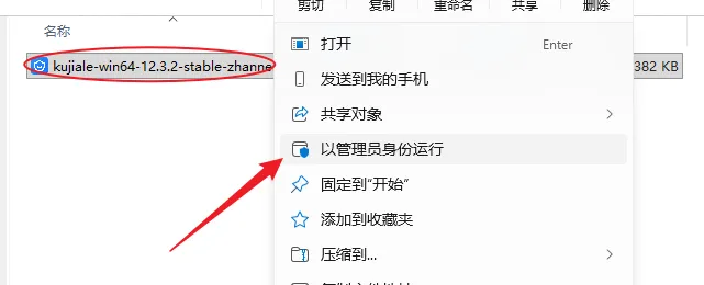 3.鼠标右击【kujiale-win64-12.3.2-stable-zhannei_denglu】选择【以管理员身份运行】。