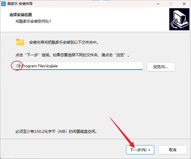 4.修改路径地址中的第一个字符C可更改安装位置(如:把C改为D软件将安装到D盘),点击【下一步】。