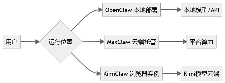 OpenClaw 可调用本地代码环境,理论能力最强。 MaxClaw 稳定性好。 KimiClaw 更偏轻量。