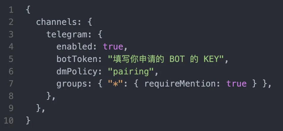 所以,其实你也可以直接在这个文件中设置 Telegram 的配置信息,类似这样: